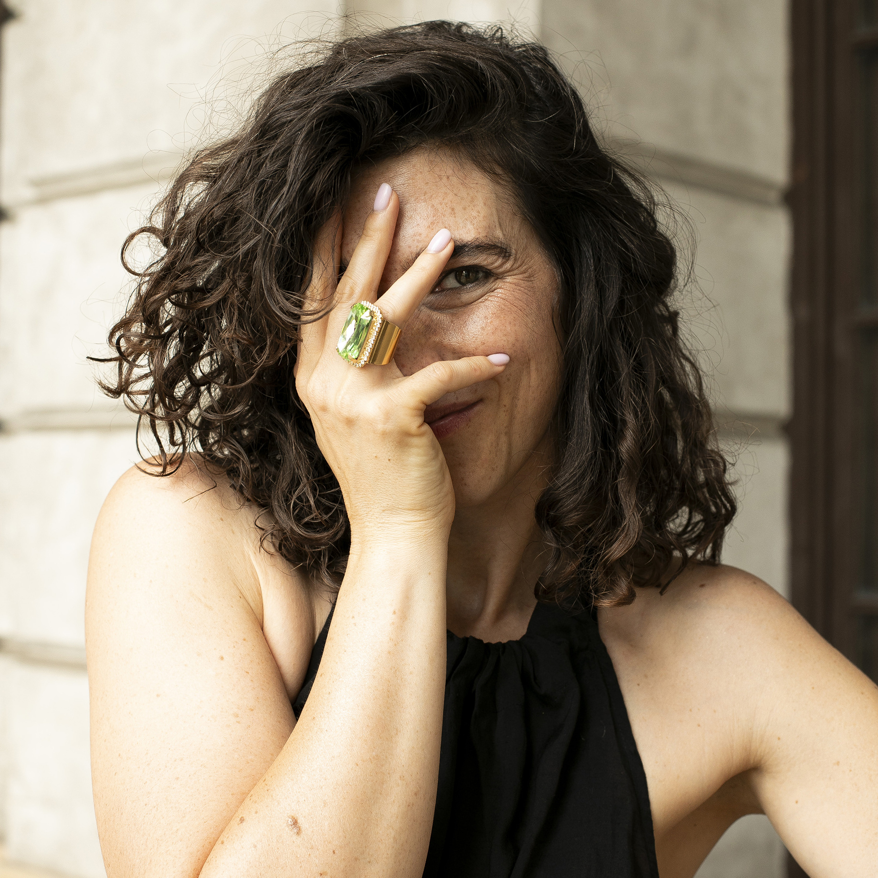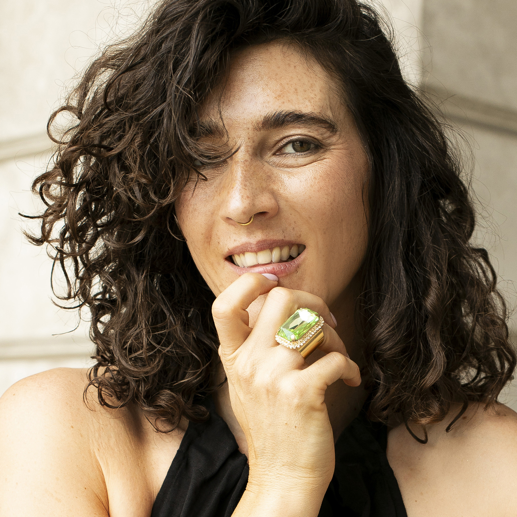 The Tel-Aviv based designer gets inspired by her travels, and her multi-cultural upbringing. She’s sensitive to all the different flavors, colors, textures, smells… She designs jewelry the way she cooks – by mixing all her favorite ingredients and waiting to see what happens. It’s about having as much fun during the process, as you when you get to enjoy the final product.