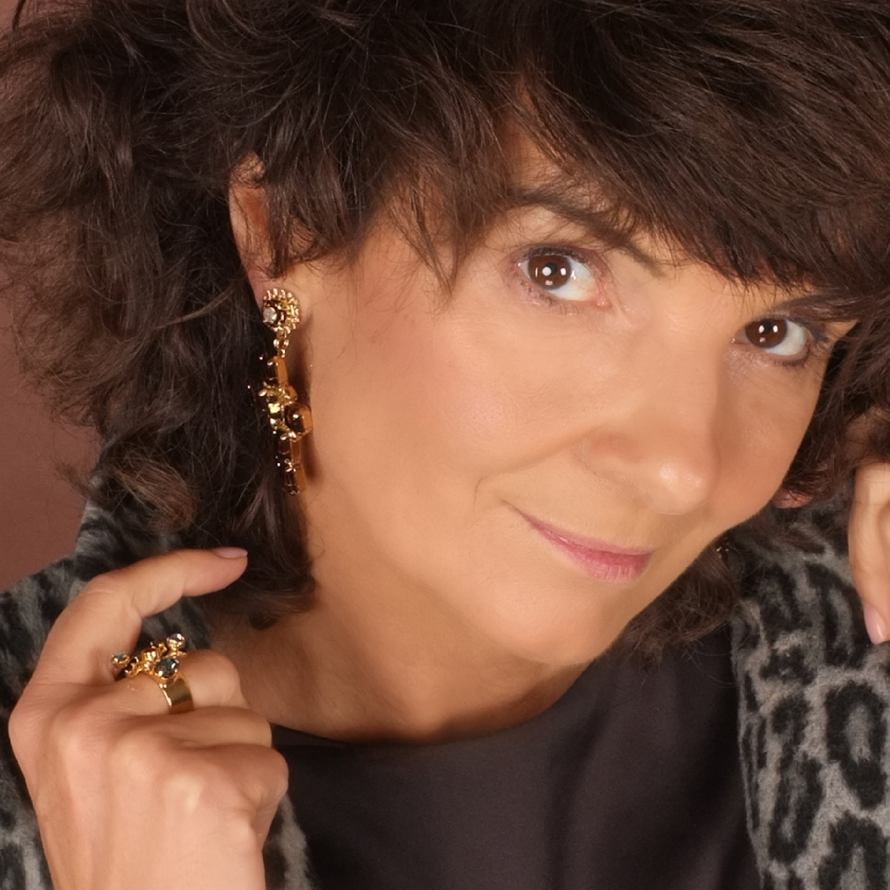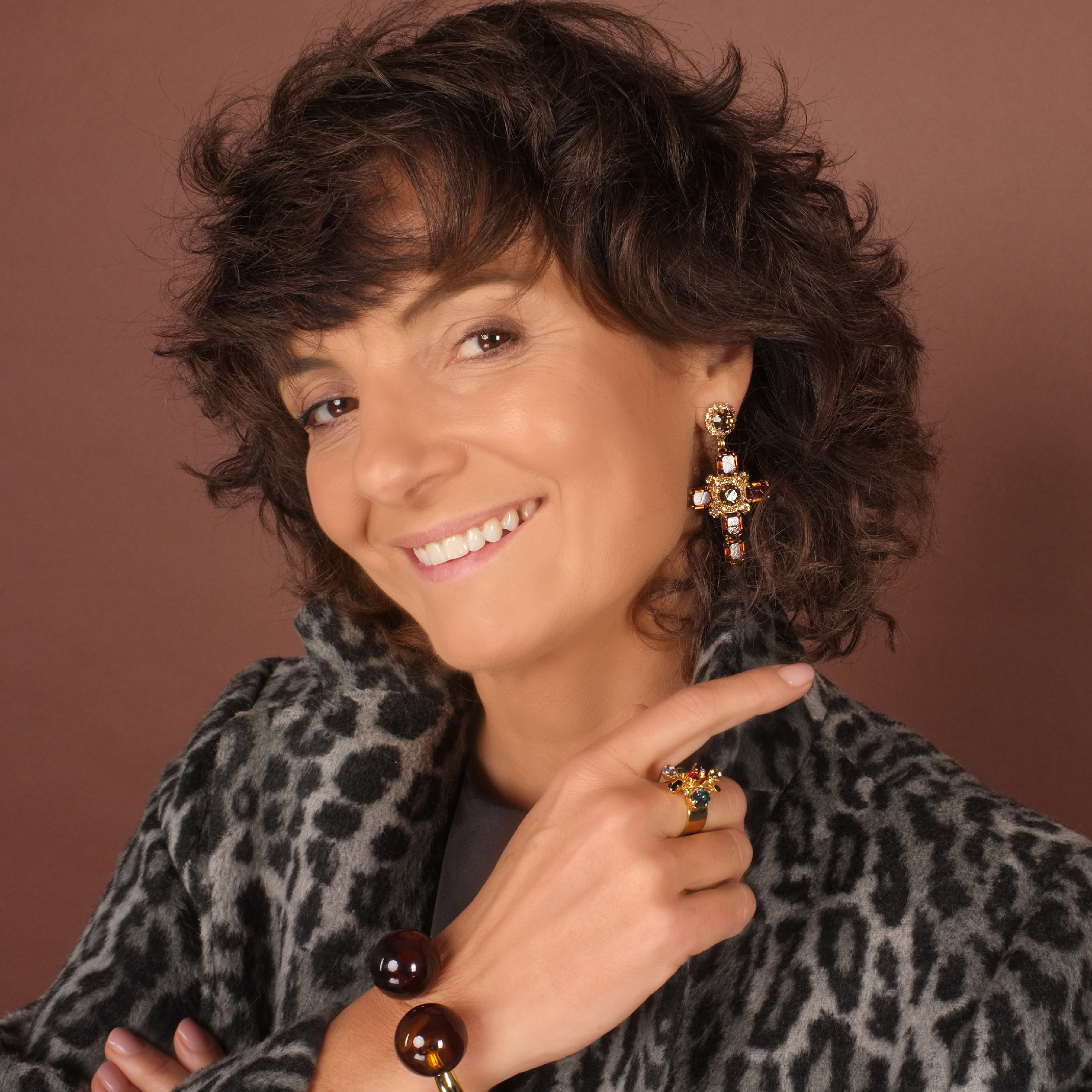So, let’s not treat ourselves too seriously, and follow Evelyne’s style: colorful, fun, but still chic. Her bracelets sparkle while sitting comfortably on your wrist, and you can wear them with just a white linen shirt. Her earrings are for when you want to emanate light!