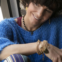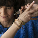 So, let’s not treat ourselves too seriously, and follow Evelyne’s style: colorful, fun, but still chic. Her bracelets sparkle while sitting comfortably on your wrist, and you can wear them with just a white linen shirt. Her earrings are for when you want to emanate light!