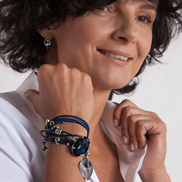 And it all started from having fun just for herself. But the necklace Evelyne made for herself was quickly noticed, she began making jewelry for friends, and ended up showing her collection in top Israeli fashion magazines. The designer pays attention to materials – beautiful Italian leather, hand-woven or braided, and beautifully combined Swarovski crystals. She wants us to have fun while wearing it.