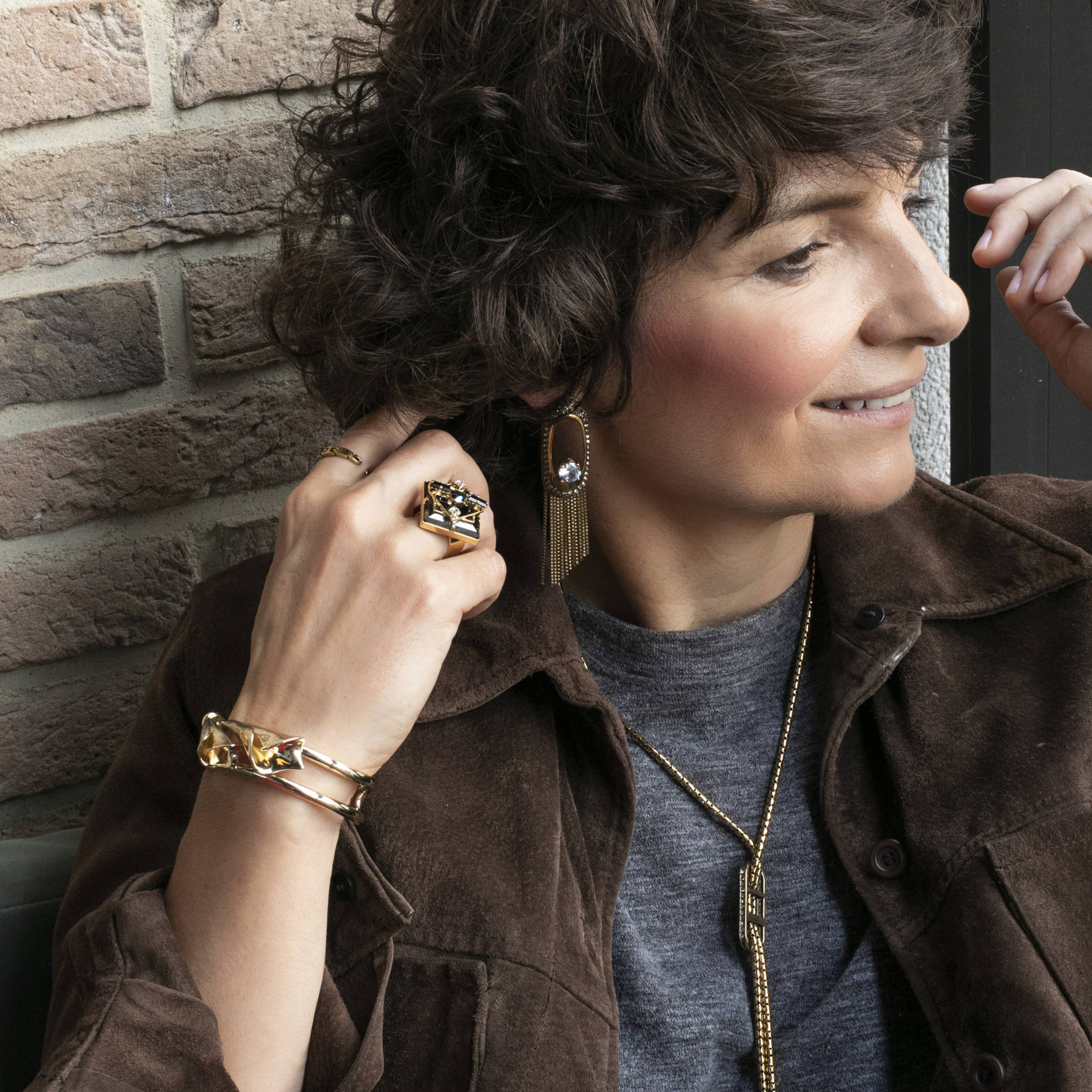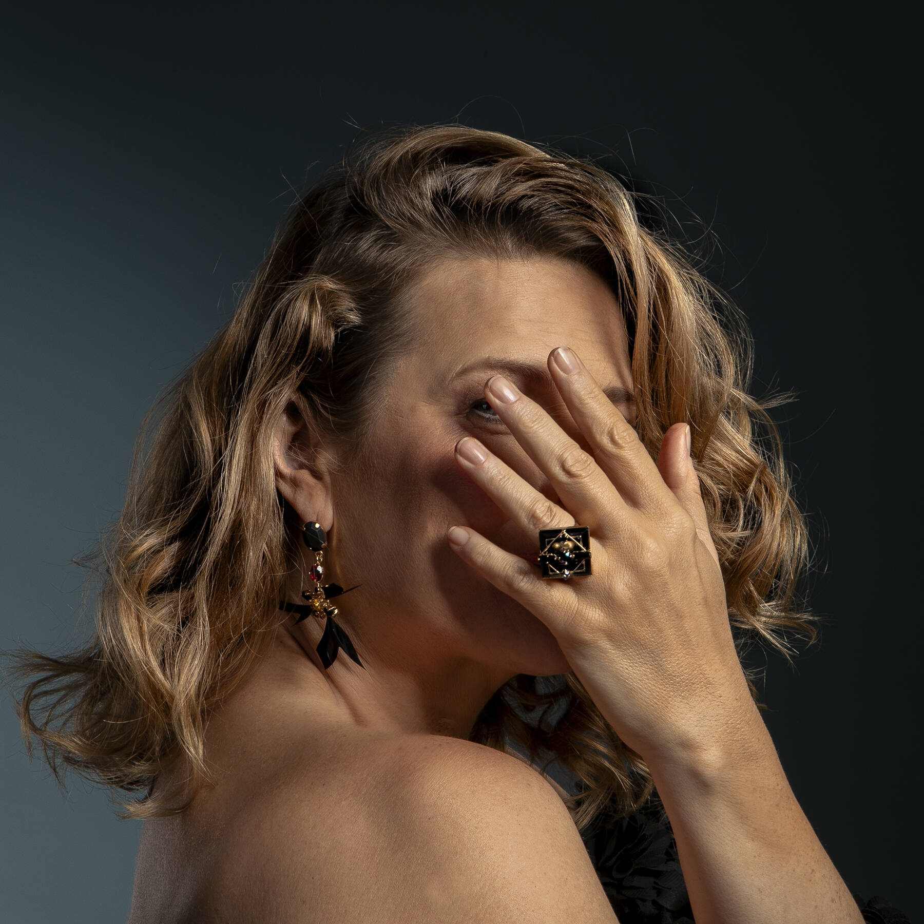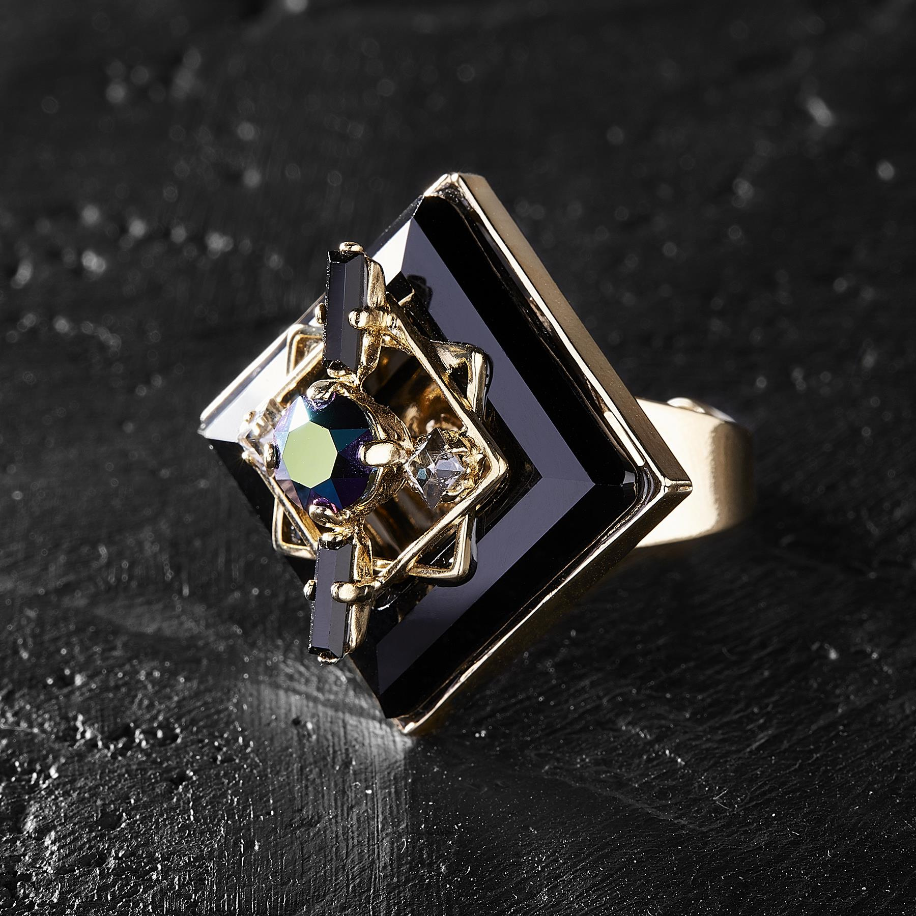 • An eye-catching ring designed by Marek Wójcicki from Paris. The square, black Swarovski crystal is what attracts attention to this piece. Metal elements are gold plated. Will boost your confidence! Made of gold-plated brass