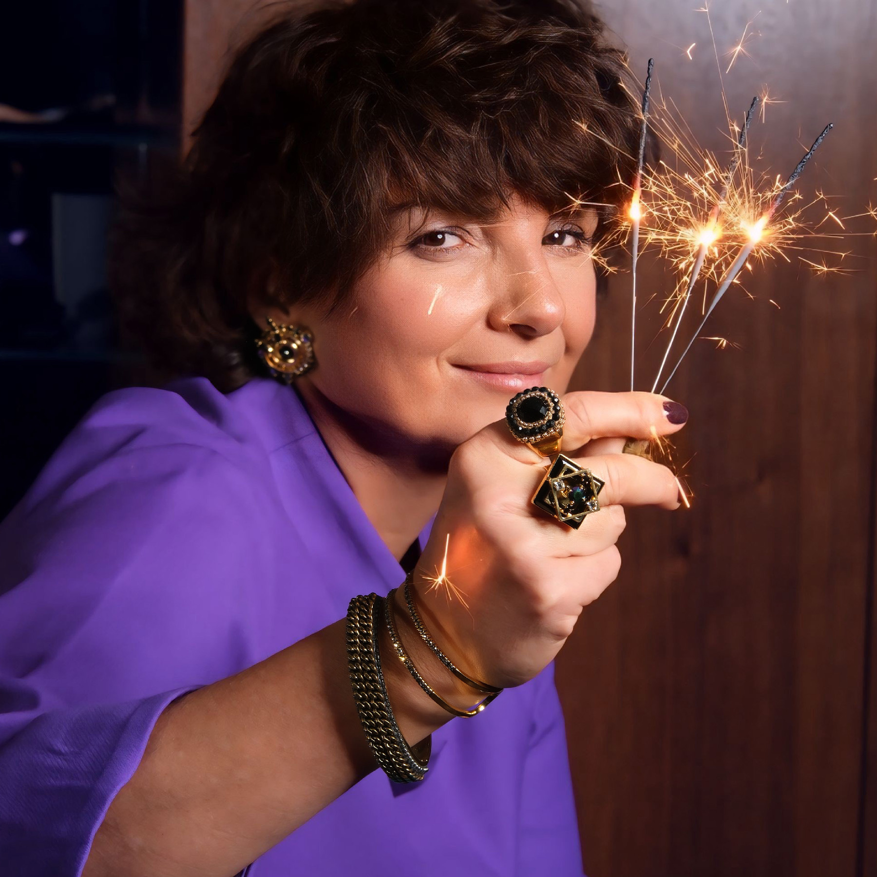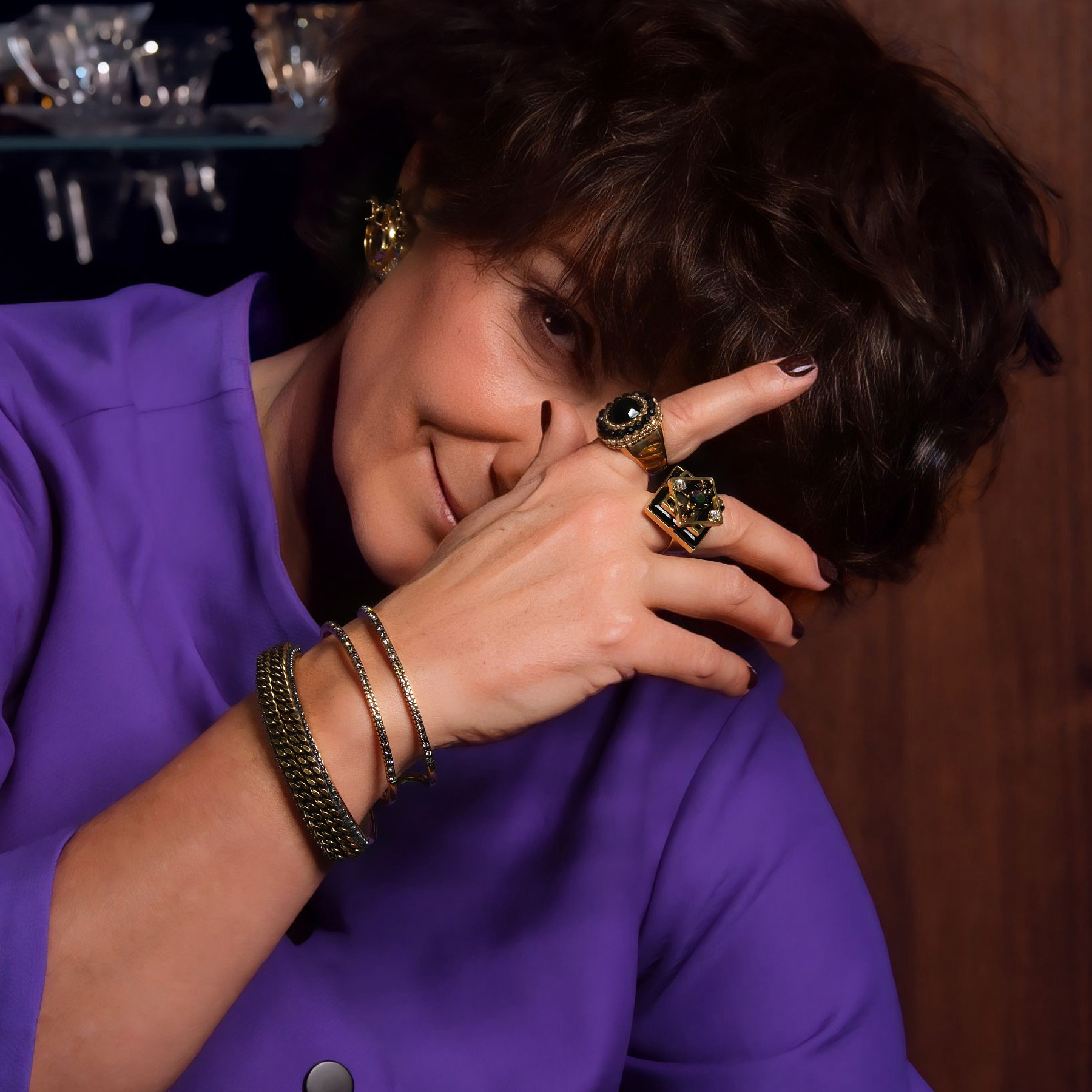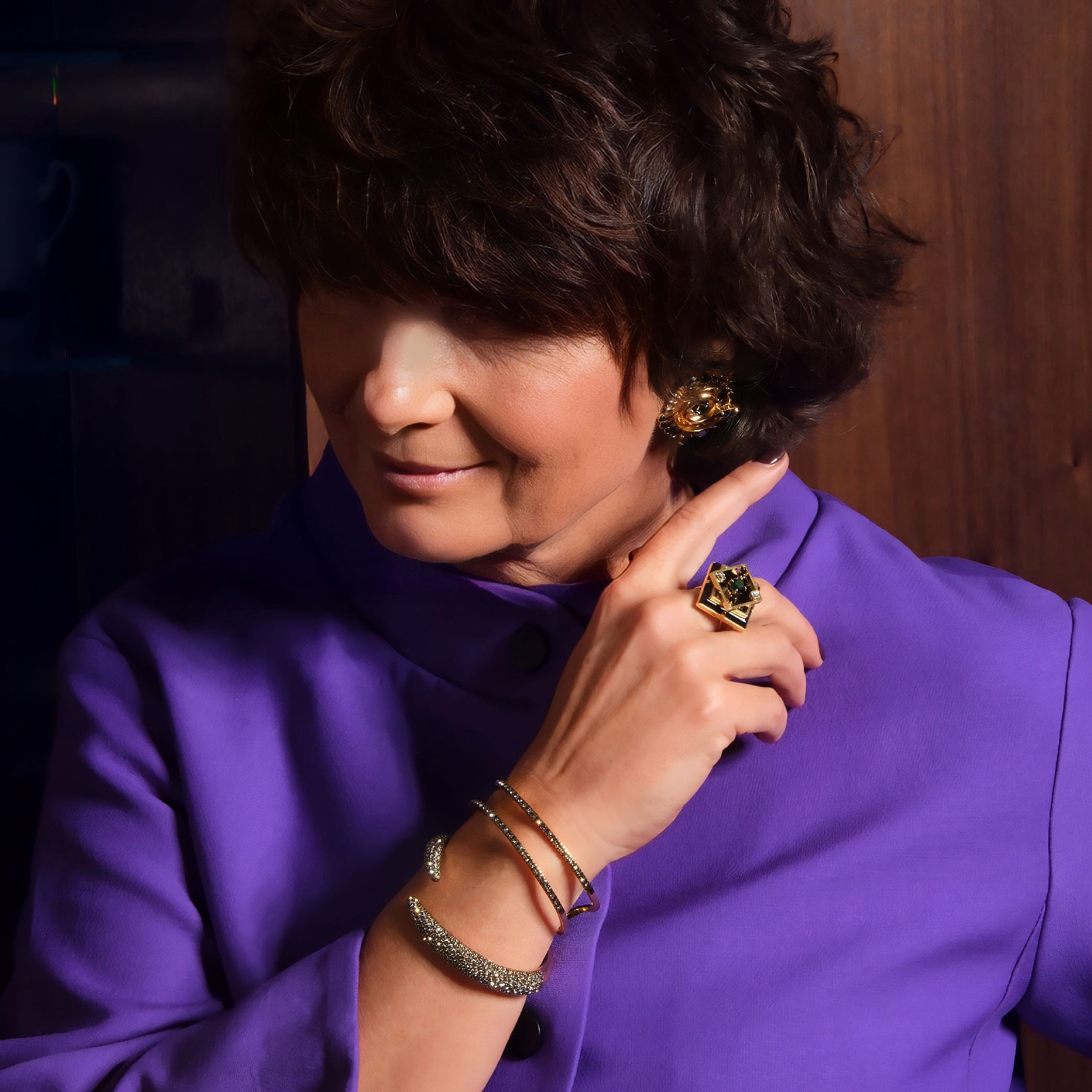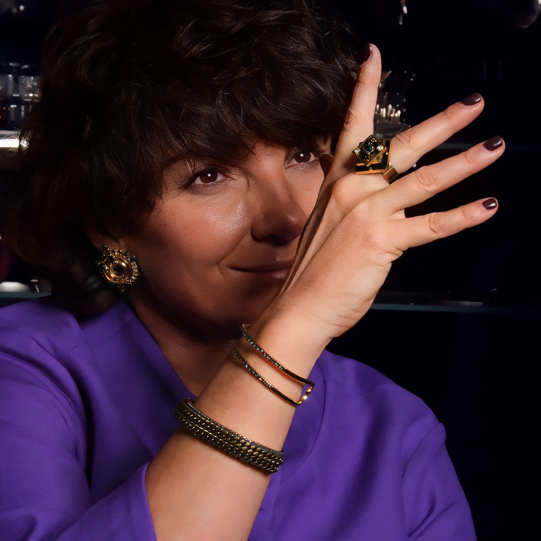 An eye-catching ring designed by Marek Wójcicki from Paris. The square, black Swarovski crystal is what attracts attention to this piece. Metal elements are gold plated. Will boost your confidence! Made of gold-plated brass