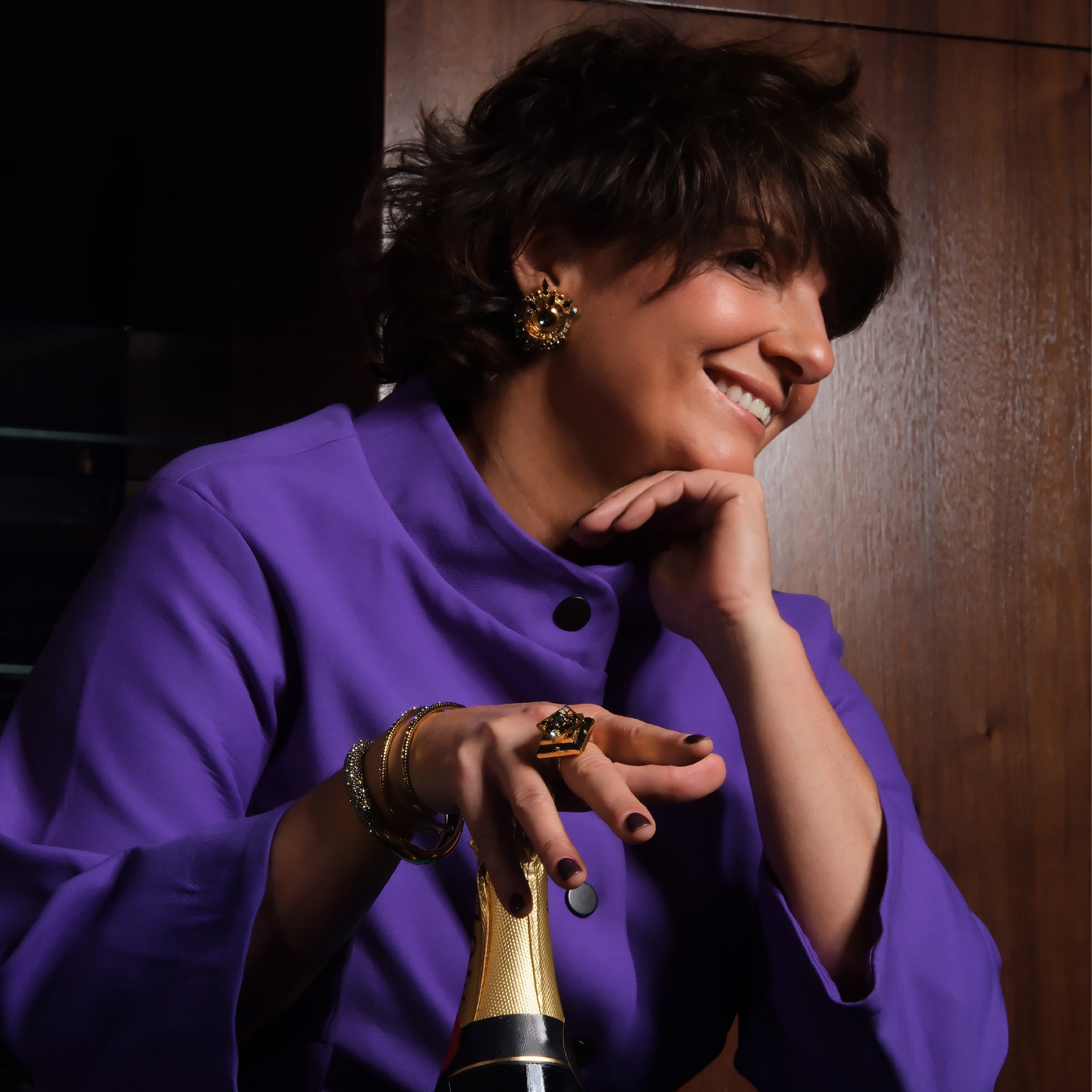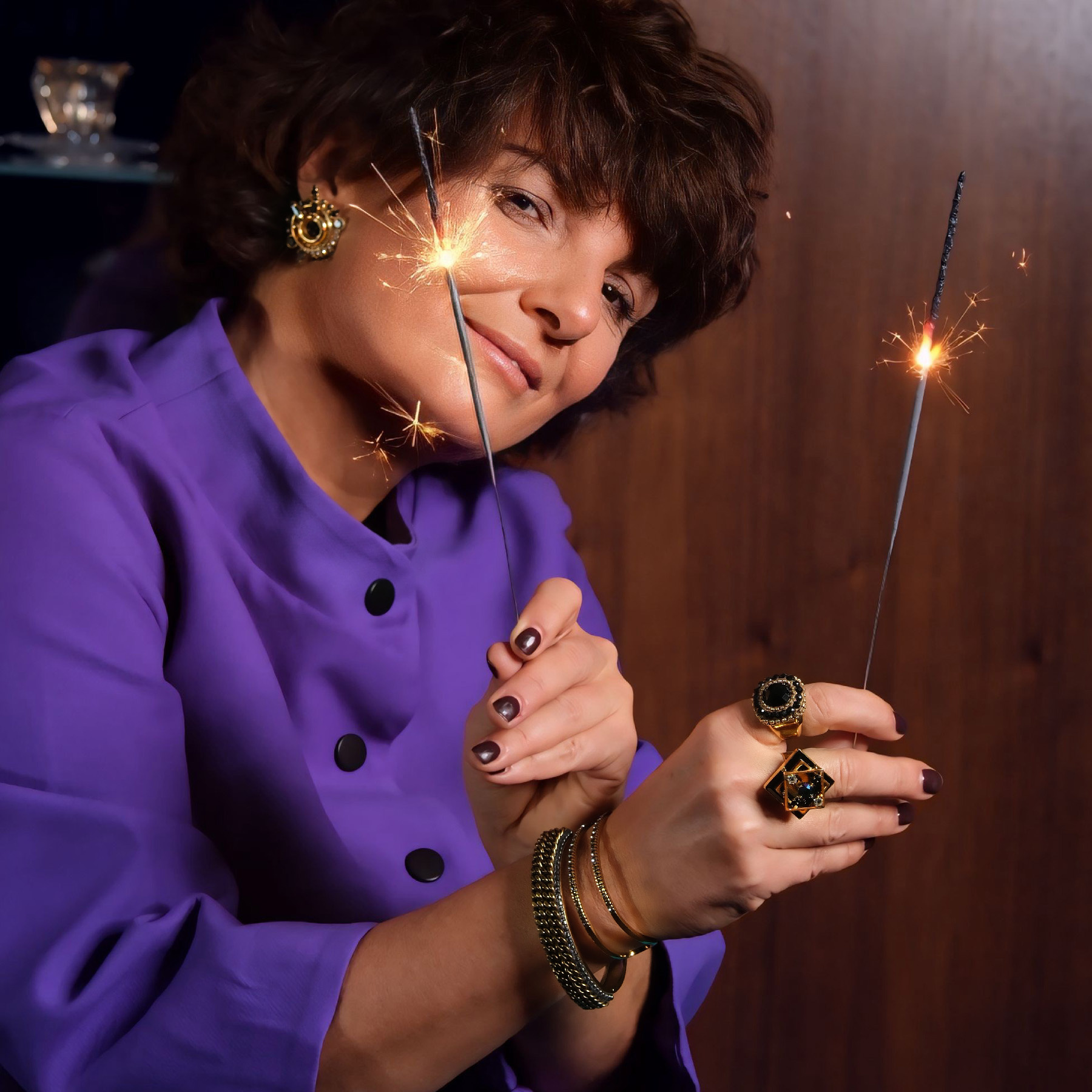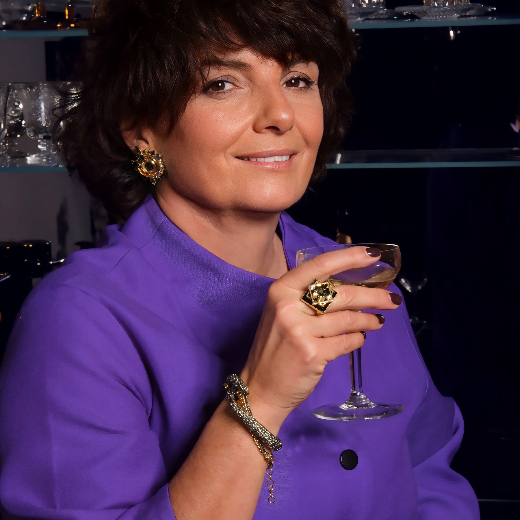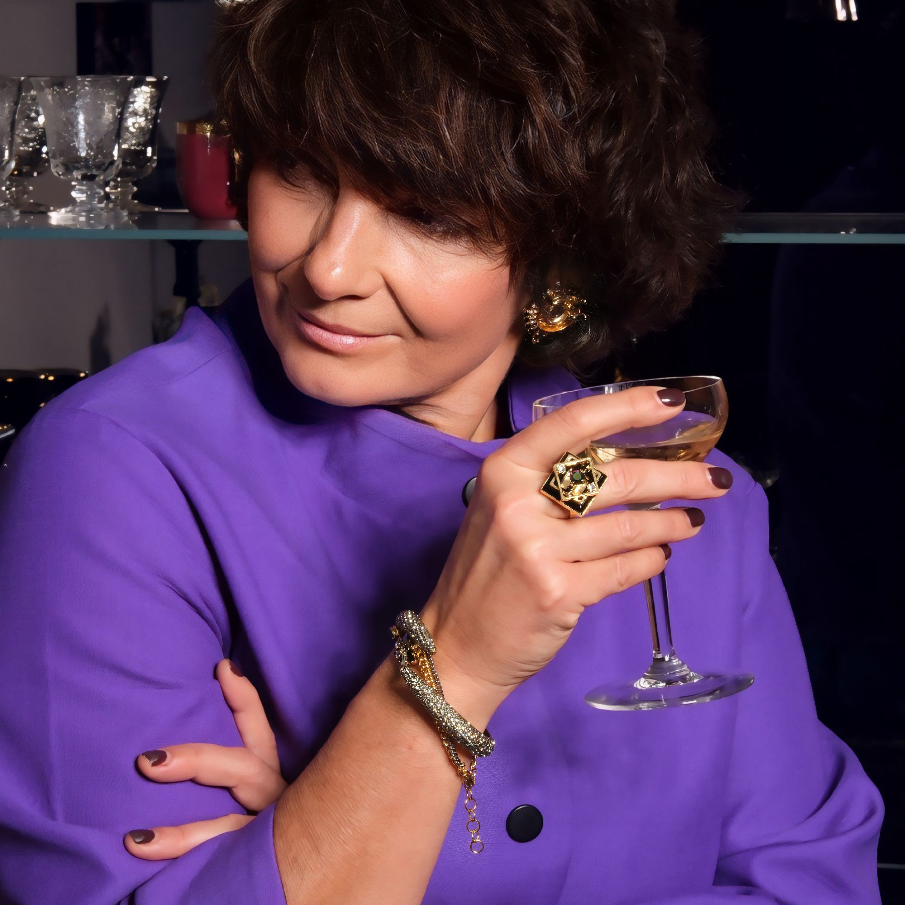 An eye-catching ring designed by Marek Wójcicki from Paris. The square, black Swarovski crystal is what attracts attention to this piece. Metal elements are gold plated. Will boost your confidence! Made of gold-plated brass