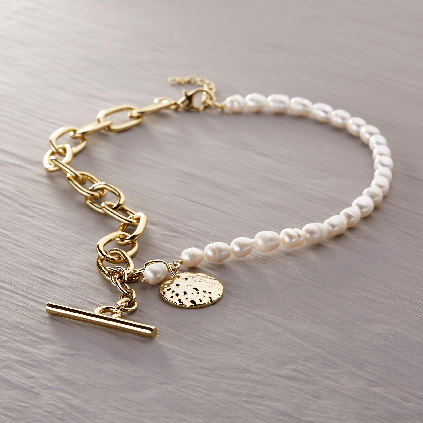 Necklace with pearls and chains