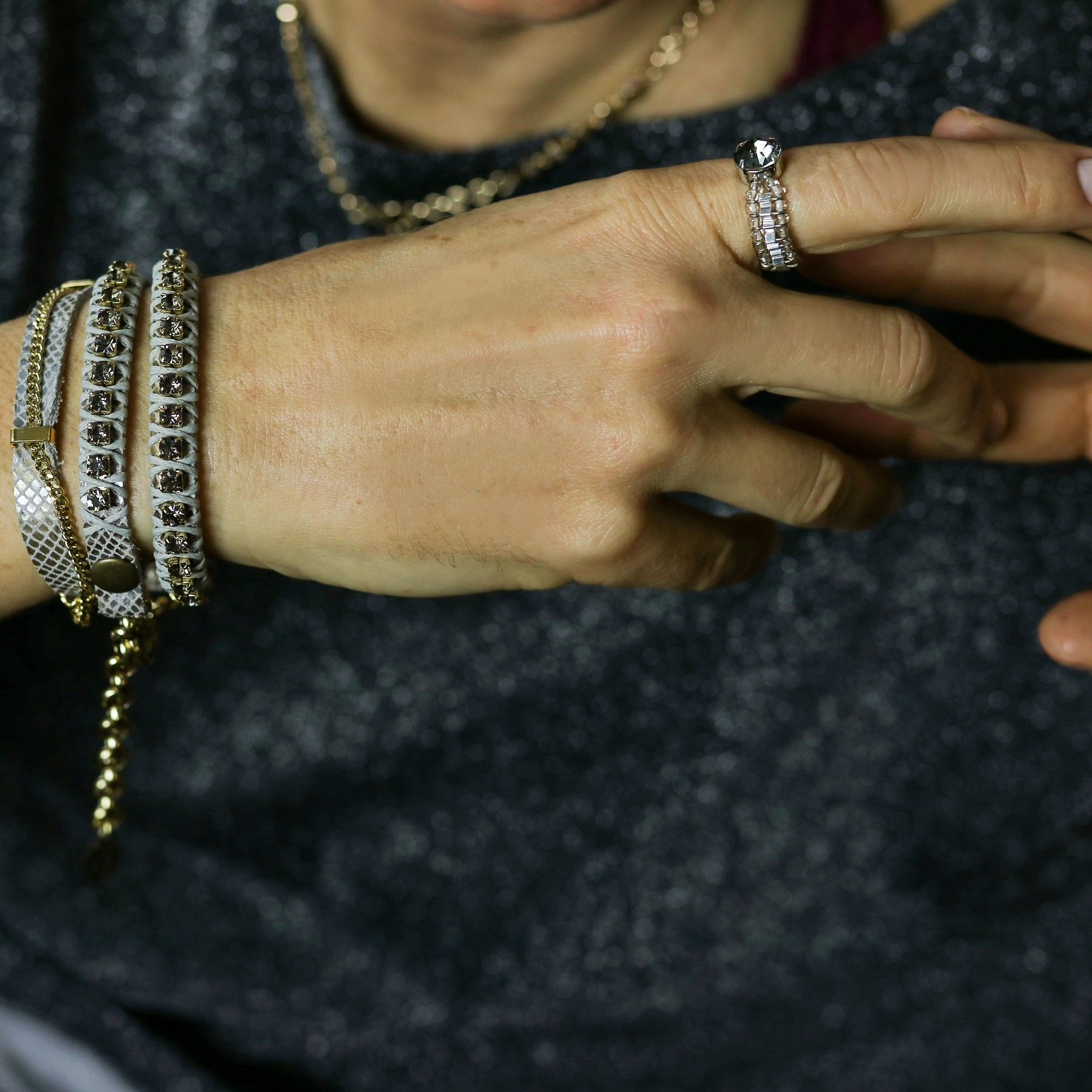 And it all started from having fun just for herself. But the necklace Evelyne made for herself was quickly noticed, she began making jewelry for friends, and ended up showing her collection in top Israeli fashion magazines. The designer pays attention to materials – beautiful Italian leather, hand-woven or braided, and beautifully combined Swarovski crystals. She wants us to have fun while wearing it.
