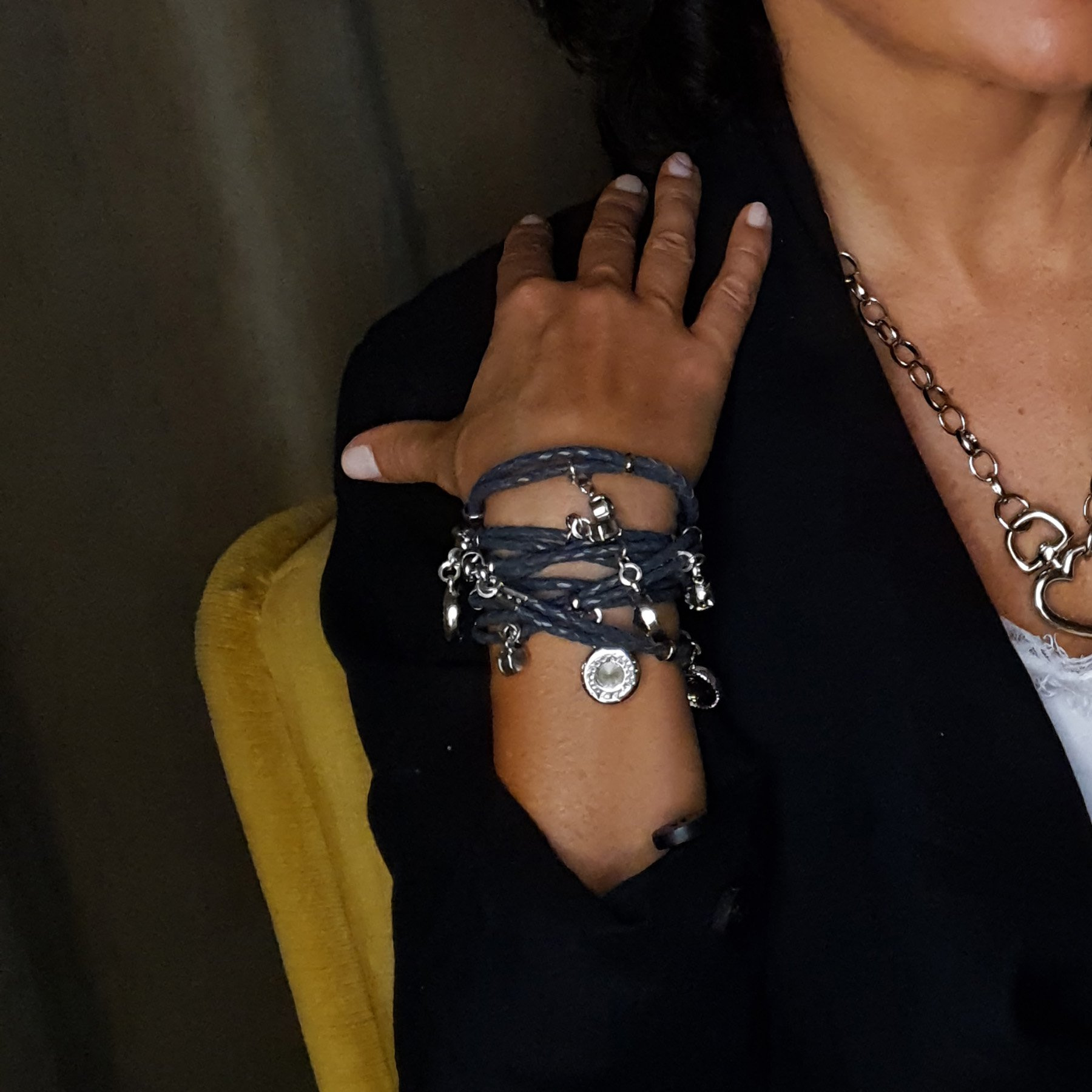 And it all started from having fun just for herself. But the necklace Evelyne made for herself was quickly noticed, she began making jewelry for friends, and ended up showing her collection in top Israeli fashion magazines. The designer pays attention to materials – beautiful Italian leather, hand-woven or braided, and beautifully combined Swarovski crystals. She wants us to have fun while wearing it.