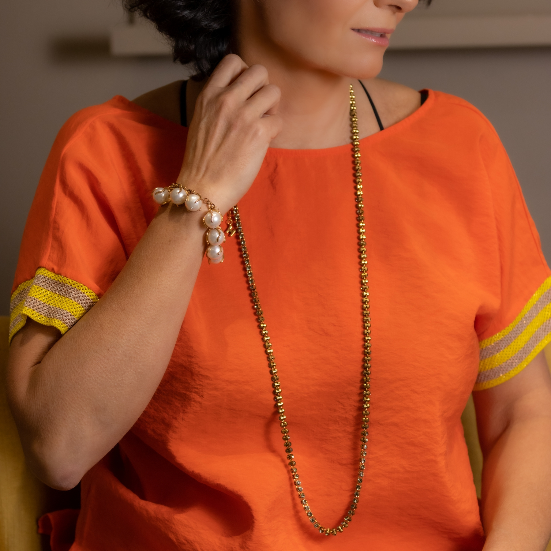 Zobacz stylizację2020-11-15Statement pearls, sparkly crystalsSince both pearls and crystals are so beautiful, why can't they be beautiful together? Especially on a background made of a basic, black outfit.Read more
